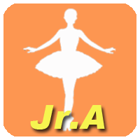 Jr.Aクラス(小学生低学年まで) 正しい基本動作、美しい姿勢を練習し、身体の表現力をつけていくクラスです。 |