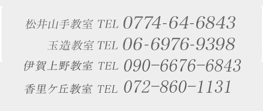 【住所】 〒573-0084 大阪府枚方市香里ヶ丘3-11-1 CONOBA香里ヶ丘2階 TEL : 072-860-1131